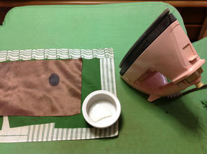 この上にもう一枚のハンカチを乗せ、アイロンを当てます