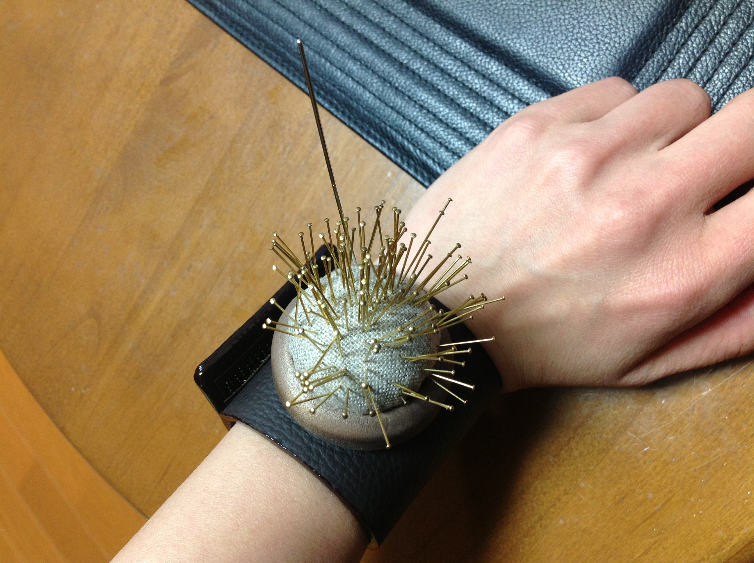 実は、これまではドレーピングなどの際には指輪型のピンクッションを使っていて、