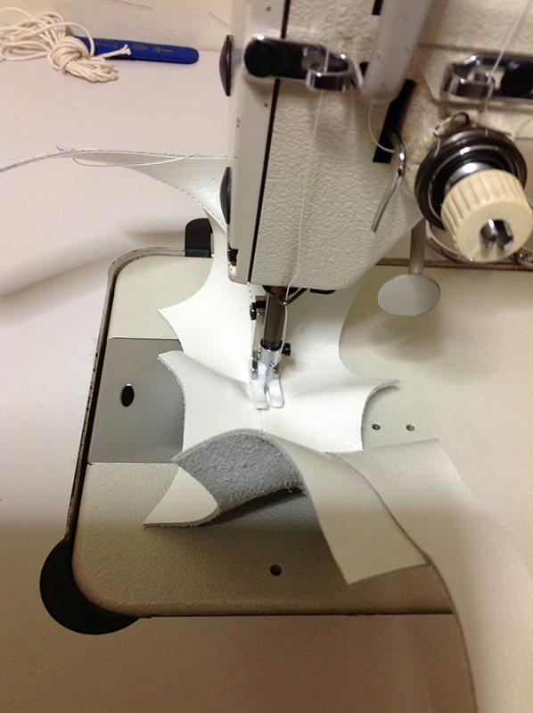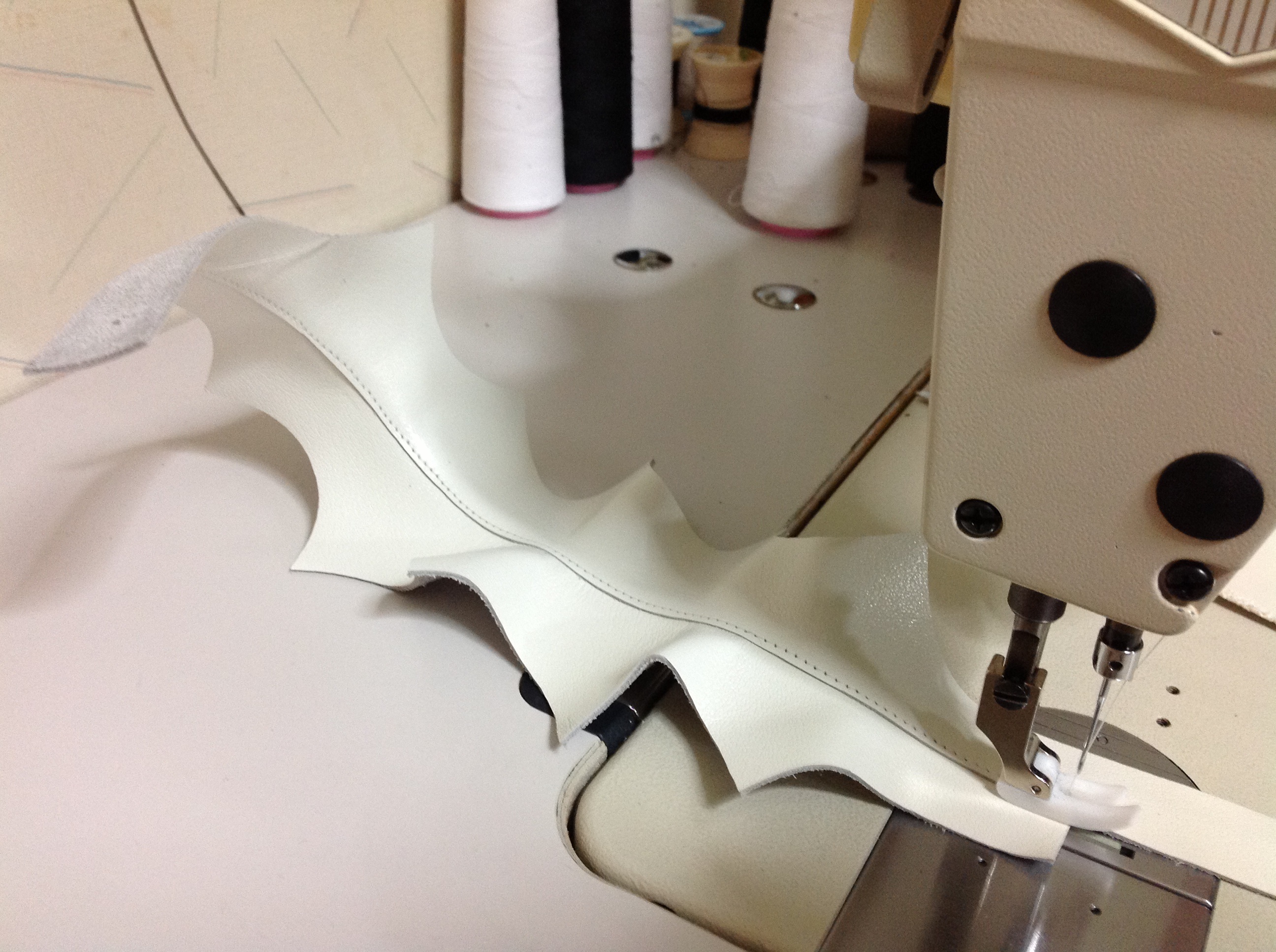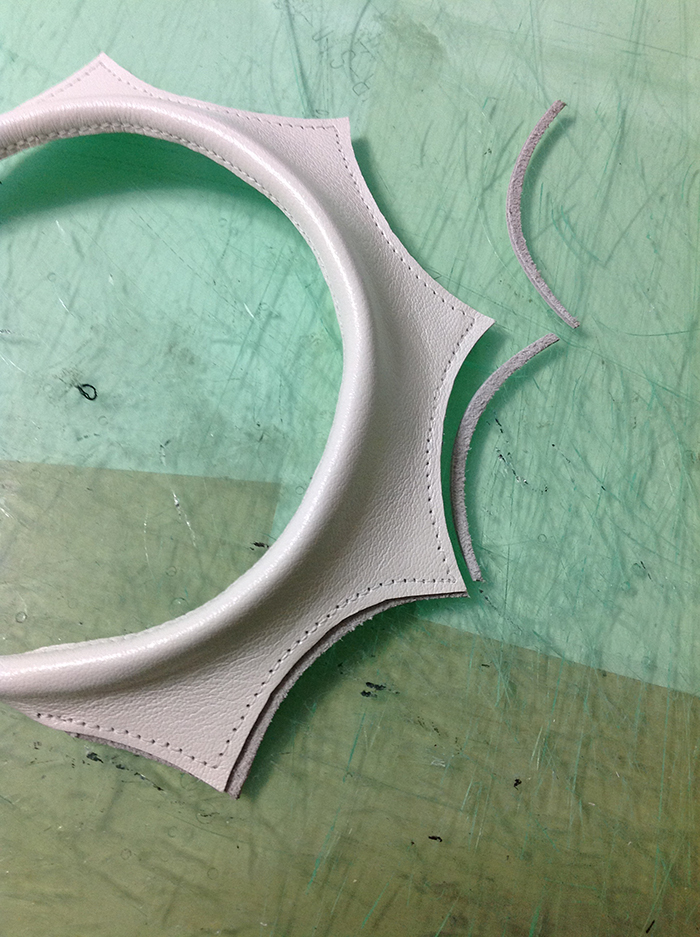 乾いたら、逆スカラップになっている部分にコバステッチかけます。