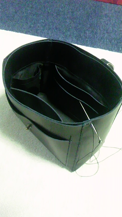 バッグの口部分、本体と内袋とを縫い合わせています。