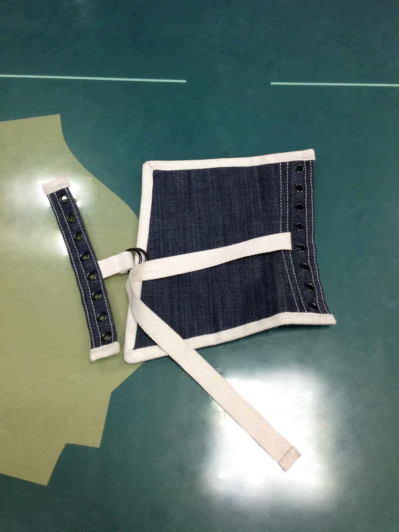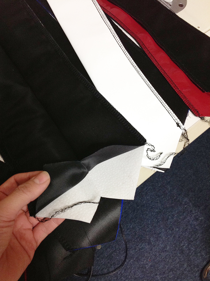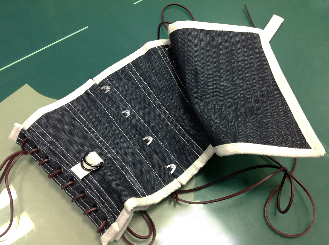 ボーンを通す用のステッチを掛け、ハトメをあけます。
