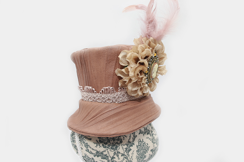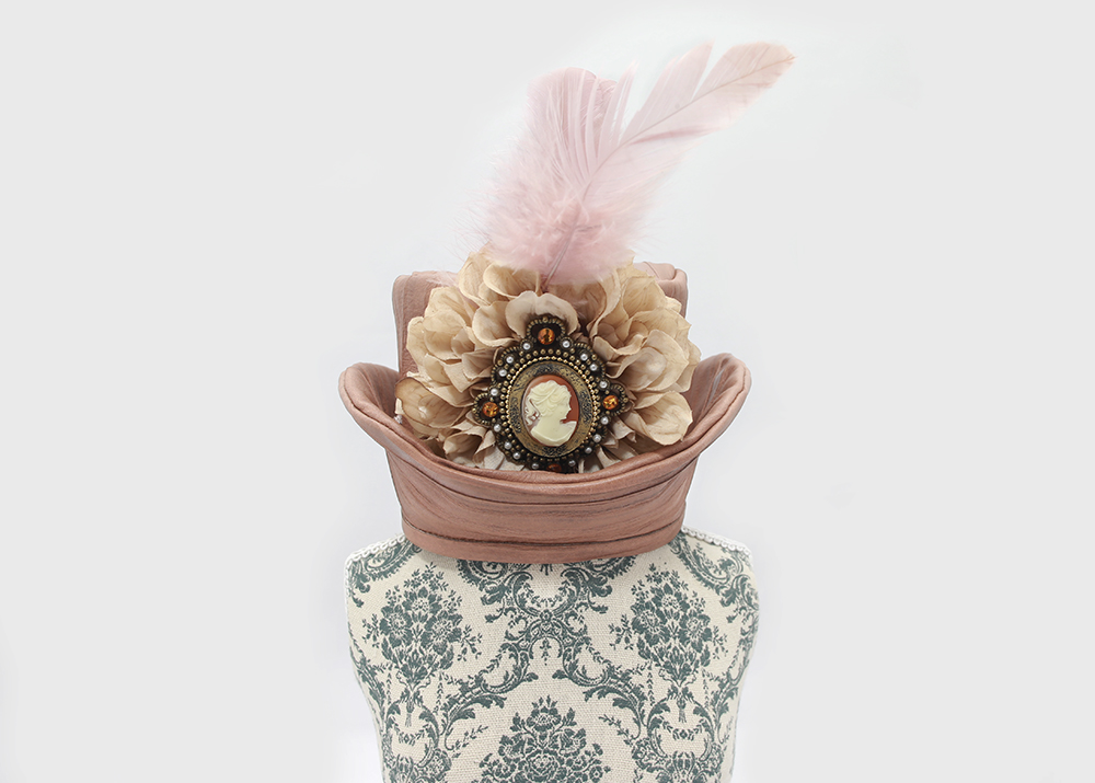 髪をアップにしてコームで留めるタイプのミニハットです。